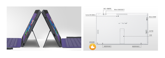 在接口部分的设计上,两款平板PC有着明显不同的定位,两款平板都能很好的考虑到用户的实际使用需求,在接口的设计上都比较丰富。相对来说Surface Pro 2提供的接口类型还是比较基础的,是我们常见的USB3.0接口以及MiniDP,虽然对于普通用户使用已经足够,但是仍然不及Tap 11丰富。 而索尼VAIO Tap 11在接口的设计上在考虑用户实用性的同时还增加了不少最新的具有一定发展潜力的接口,包括NFC近场通讯等功能让索尼VAIO Tap 11不仅能够实现Surface Pro 2上的一般外接功能,更具有一定预见性和前瞻眼光。另外Tap 11的USB接口比Surface Pro 2多出一个来,这对于用户来说意义也是相当大的。