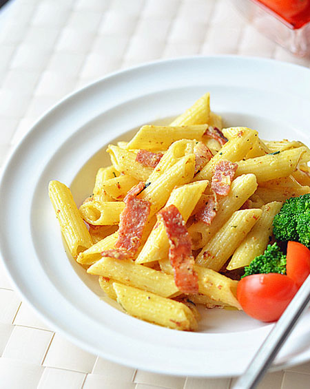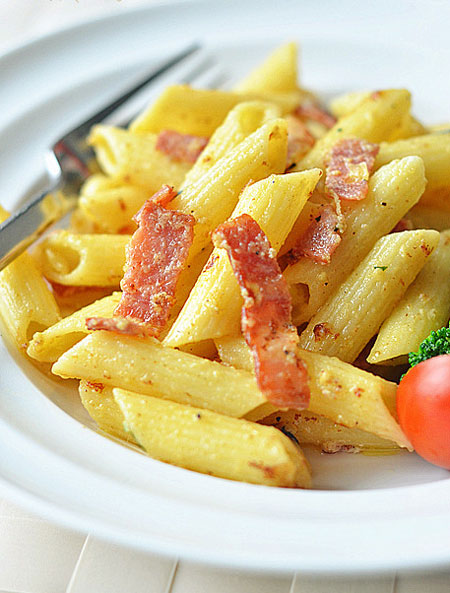 9 这道白酱意大利面是更方便快捷的做法,能让你更迅速地品尝到幸福滋味,省略了煮奶油和炒面粉的步骤,直接将奶油中加入芝士粉和蛋黄搅拌拌匀就是香浓的白酱,简单的方法就可以品尝到顶级的口感,一起来幸福吧!