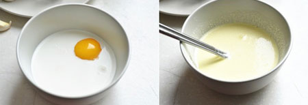 3 另取一个大碗,将淡奶油中加入蛋黄,芝士粉。搅拌均匀就是白酱。